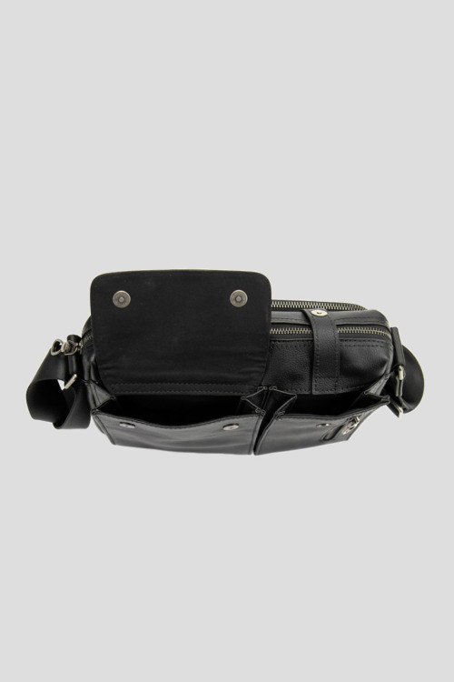 Детали: Мужская черная сумка-мессенджер от Tiding Bag (Тайдинг Бег). Одно основное отделение, застежка на молнию, с лицевой стороны накладной карман на двух магнитных кнопках, накладной карман открытого типа, на котором расположен карман на молнии вертикального типа, внутри сумки два кармана на молнии и карман открытого типа, с тыльной стороны два кармана на молнии горизонтального типа. Размер: 26,5 x 16 x 5 см