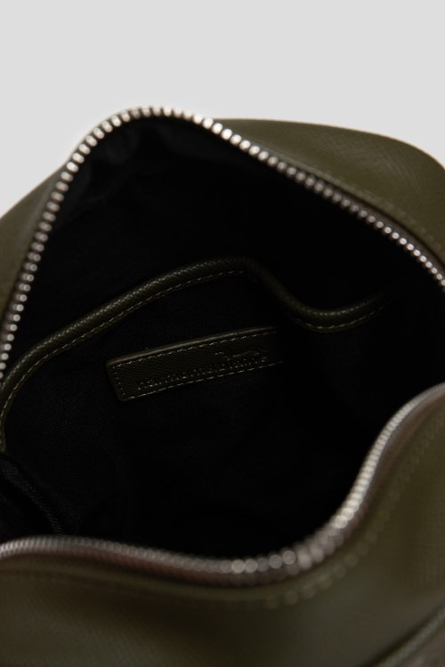Детали: Мужская сумка цвета хаки из экокожи от Harmont & Blaine (Хармонт энд Блейн). Одно отделение, застежка на молнию, внешний карман на молнии, тиснение с логотипом бренда, регулируемый плечевой ремень. Измерения: высота 24 см, ширина:18 см, ширина по дну: 9 см