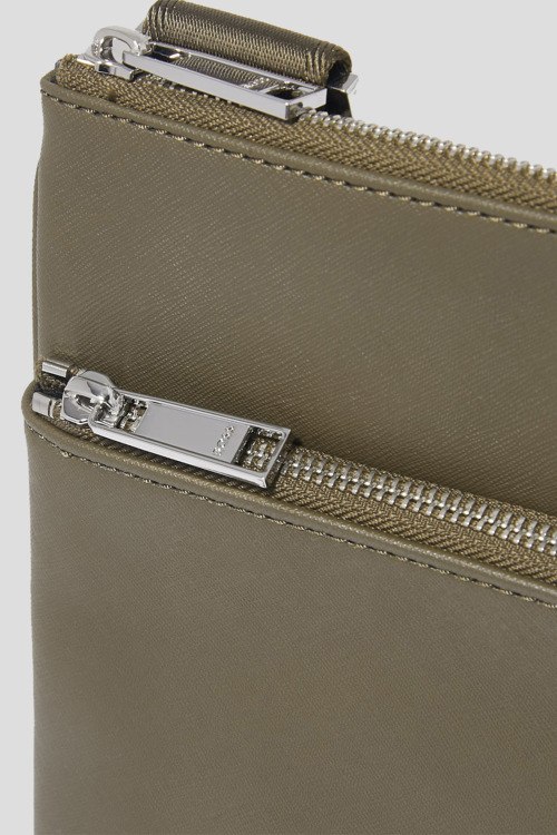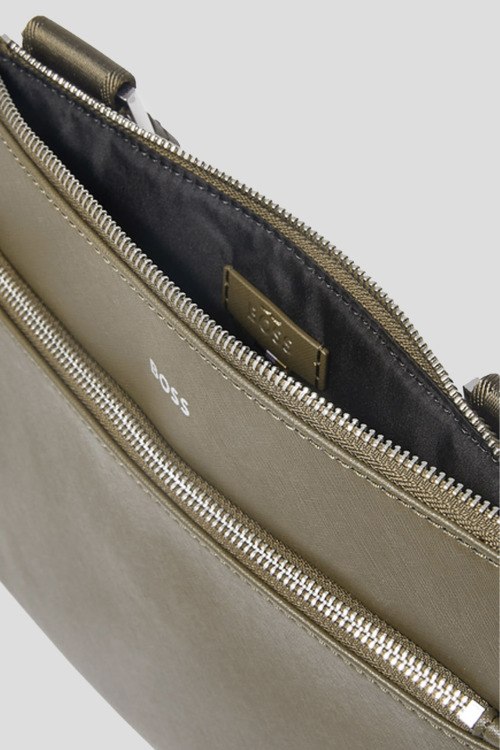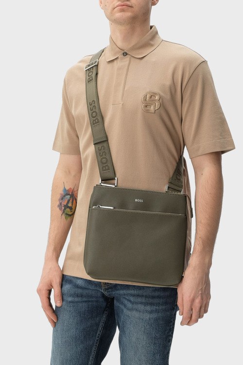 Детали: Мужская сумка-мессенджер цвета хаки из натуральной кожи от Hugo Boss (Хуго Босс). Одно отделение, застежка на молнию, внешний карман на молнии, логотип бренда, регулируемый плечевой ремень. Размеры: 25 х 24 х 2,5 см.