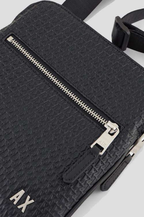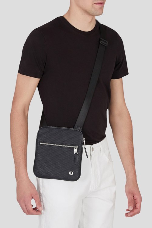 Детали: Мужская темно-синяя сумка мессенджер из экокожи от Armani Exchange (Армани Эксчендж). Монограмма по всей поверхности, значок с логотипом, внешний карман на молнии, застежка-молния, одно отделение, регулируемый плечевой ремень. Размеры: 20 х 22 х 2 см