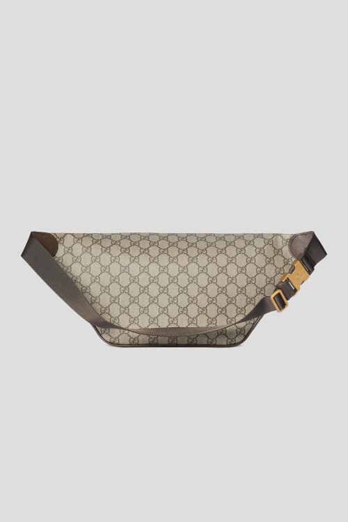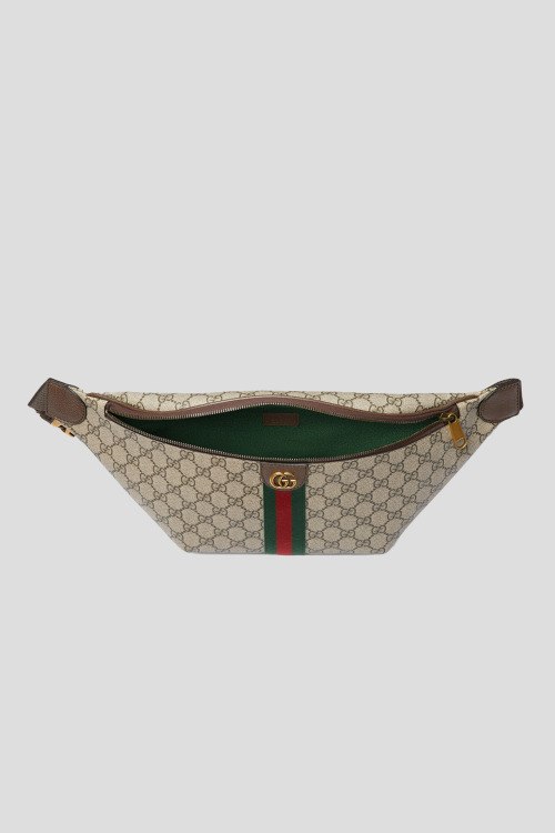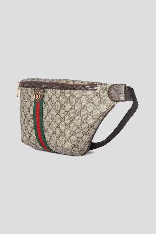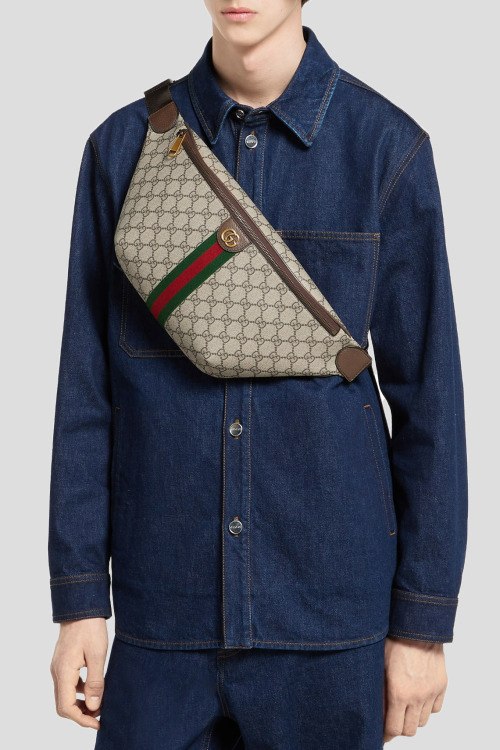 Детали: Мужская бежевая текстильная поясная сумка Ophidia от Gucci (Гуччи). Монограмма GG по всей поверхности, красно-зеленая полоска Web, золотистый значок логотипа, застежка-молния, одно отделение, регулируемый поясной ремень. Размеры: ширина - 46 см, глубина - 5 см, высота - 18 см. Ремень: 90-120 см