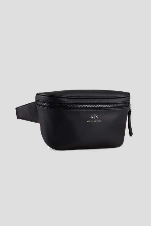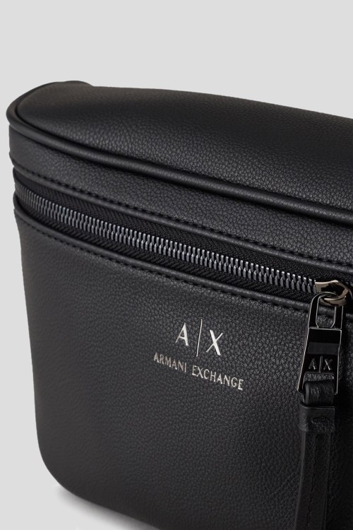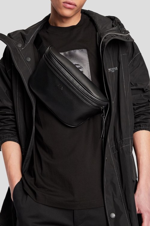 Детали: Мужская черная поясная сумка из экокожи от Armani Exchange (Армани Эксчендж). Зернистая текстура, тиснение логотипа, регулируемый поясной ремень, застежка-молния, одно отделение. Размеры: 27х14.5х7 см