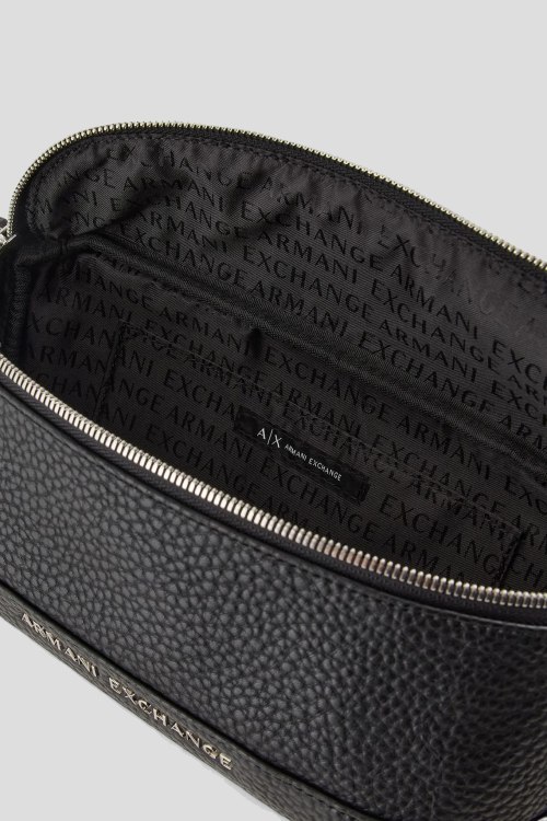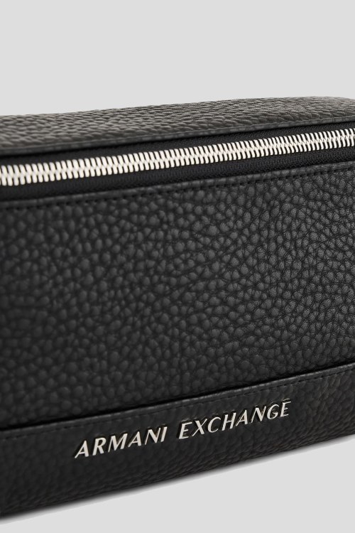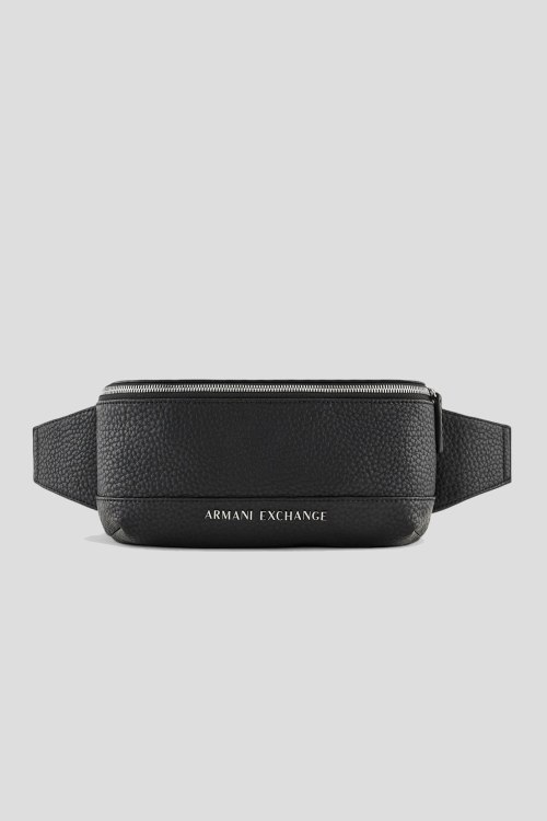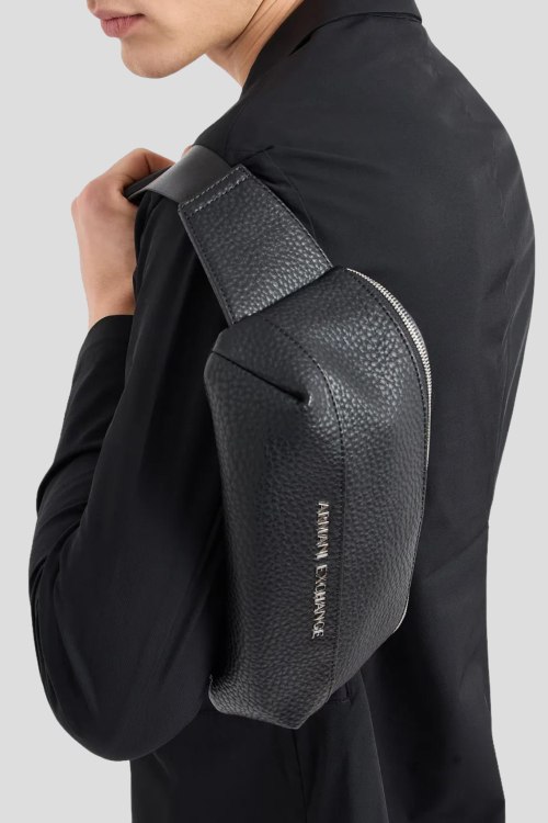Детали: Мужская черная сумка на пояс из экокожи от Armani Exchange (Армани Эксчендж). Зернистый материал, металлический логотип, серебристая фурнитура, застежка-молния, одно отделение, регулируемый поясной ремень. Размеры: 25 х 13.5 х 5.5 см