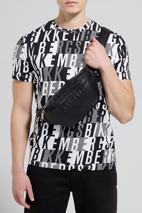 Детали: Мужская черная сумка на пояс из экокожи от Bikkembergs (Биккембергс). Модель из гладкой кожи, тиснение логотипа, застежка-молния, одно отделение, регулируемый поясной ремень. Размеры: 35 x 15 x 7 см