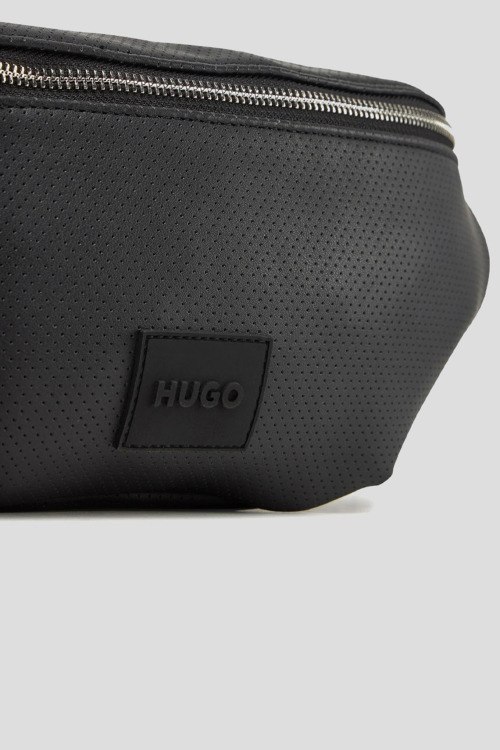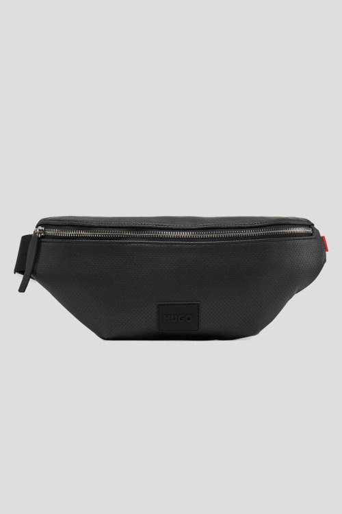 Детали: Мужская черная сумка на пояс из экокожи Ethon от Hugo by Hugo Boss (Хуго бай Хуго Босс). Нашивка с логотипом, застежка-молния, одно отделение, регулируемый поясной ремень. Размеры: глубина: 7 см, высота: 14 см, ширина у основания: 32 см