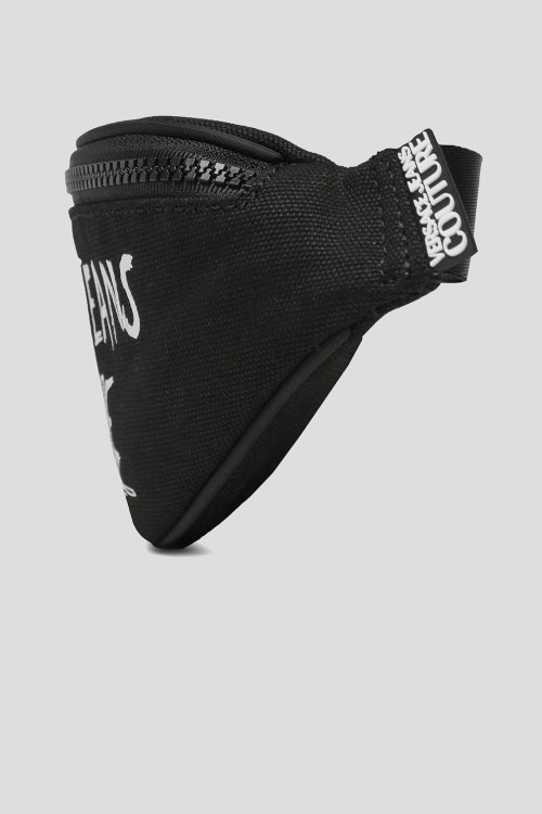 Мужская черная сумка на поясе из полиэстера от Versace Jeans Couture (Версаче Джинс Кутюр). Одно отделение, застежка на молнию, внешний карман на молнии, брендированный принт. Размер: 27 х 13 х 9 см