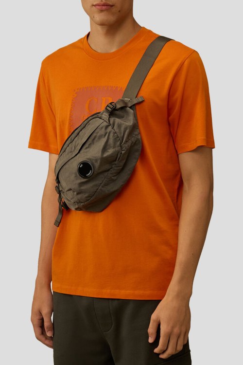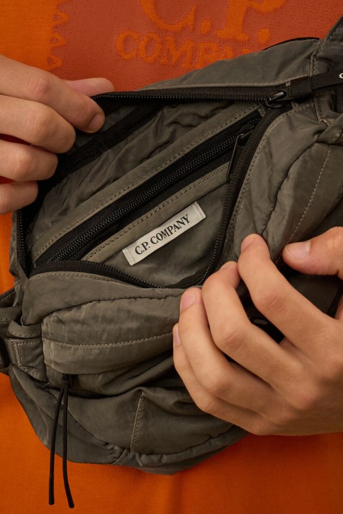 Детали: Мужская сумка на пояс цвета хаки из ткани Nylon B от C.P. Company (СиПи Компани). Нашивка с логотипом, внешний карман на молнии, застежка-молния, одно отделение, регулируемый поясной ремень. Размеры: 26 х 20 х 6 см
