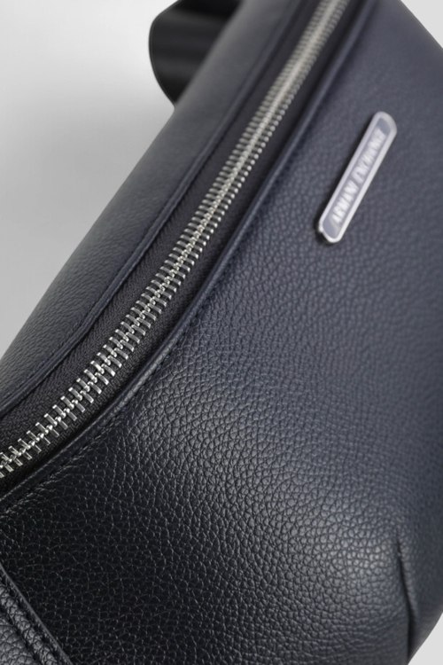 Детали: Мужская темно-синяя сумка на пояс из экокожи от Armani Exchange (Армани Эксчендж). Значок с логотипом, застежка-молния, одно отделение, регулируемый плечевой ремень. Размеры: 35 х 14 х 5 см