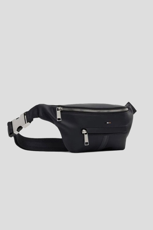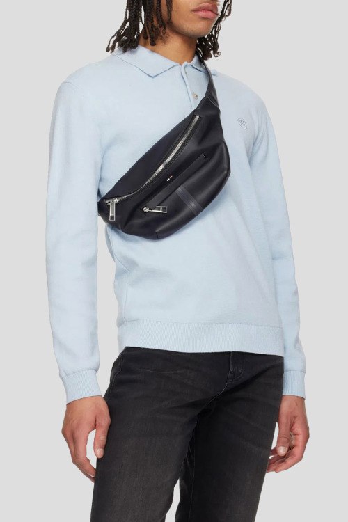 Детали: Мужская темно-синяя сумка на пояс из экокожи Ray_S_Bumbag от Hugo Boss (Хуго Босс). Модель из гладкой кожи, тиснение логотипа, внешний карман на молнии, застежка-молния, одно отделение, регулируемый поясной ремень. Размеры: 21 x 15.5 x 5 см