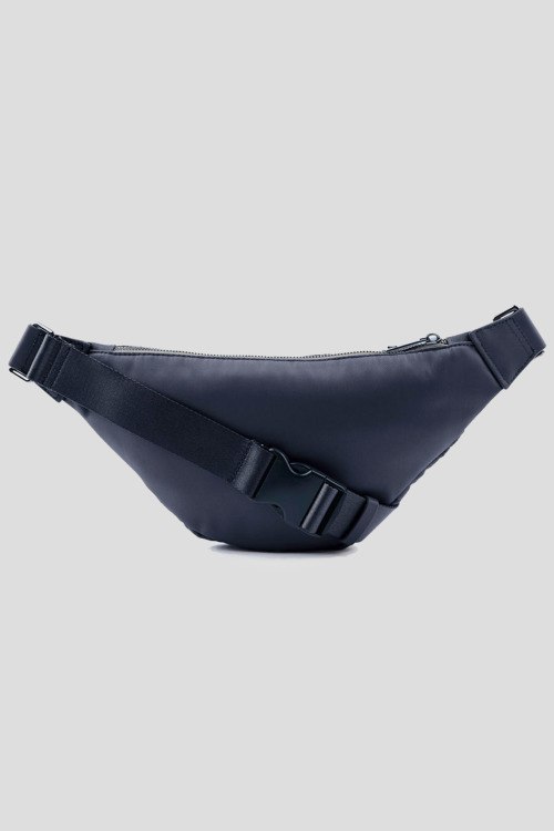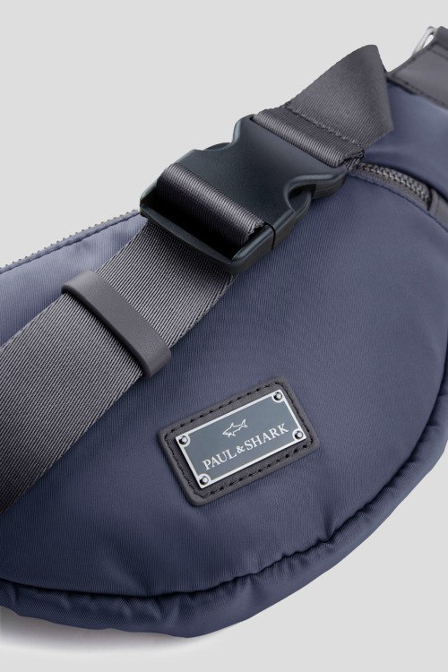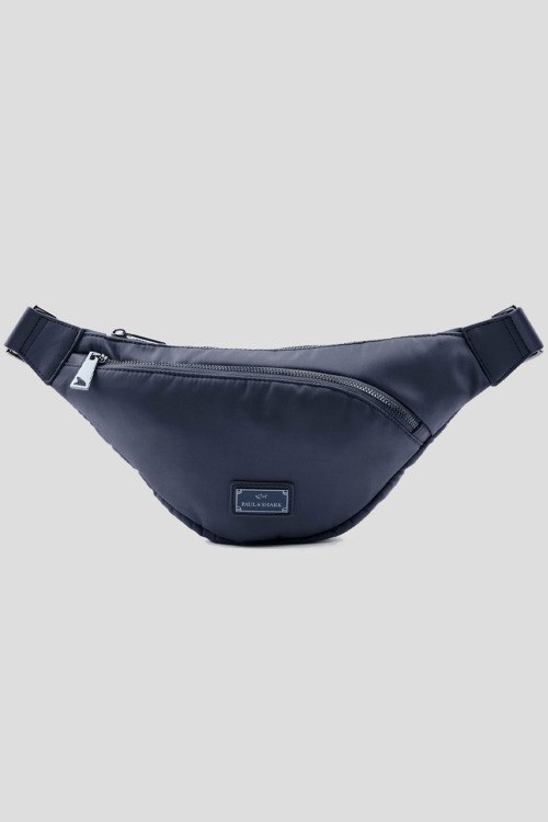 Мужская темно-синяя сумка на пояс из нейлона от Paul & Shark (Пол энд Шарк). Одно отделение, застежка на молнию, внешний карман на молнии, регулируемый ремень, патч-лого. Измерения: высота: 16 cм, ширина: 31 cм