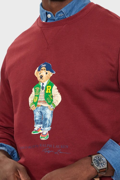 Детали: Мужской бордовый свитшот из хлопкового микса от Polo Ralph Lauren (Поло Ральф Лорен). Классическая длина, круглый вырез горловины, длинные рукава, манжеты и низ изделия на трикотажной резинке, брендированный принт спереди