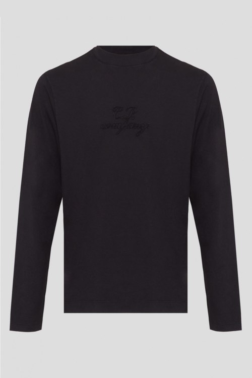 Детали: Мужской черный лонгслив из хлопка от C.P. Company (СиПи Компани). Классическая длина, круглый вырез горловины, длинные рукава, вышитый логотип бренда. Замеры: длина рукава: длинный, для размера М - 66 см, обхват груди: для размера М - 106 см, обхват талии: для размера М - 104 см, длина изделия по среднему шву спинки от горловины: для размера М - 68 см