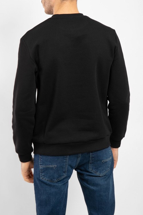 Мужской черный свитшот из хлопка от Bikkembergs (Биккембергс). Классическая длина, круглый вырез горловины, длинные рукава, трикотажная резинка на манжетах и по низу изделия, брендированный принт на груди, модель утепленная флисом.