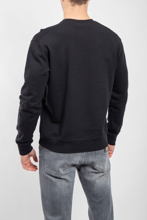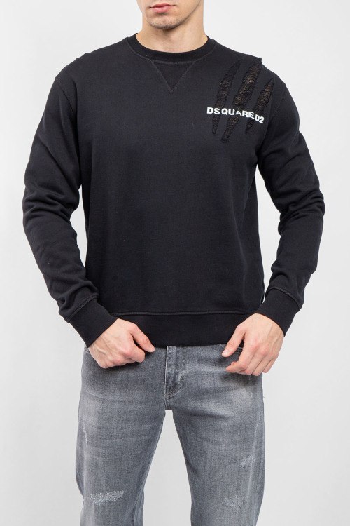 Мужской черный хлопковый свитшот от Dsquared2 (Дискваред). Принт с логотипом, дизайн с потертостями, круглый вырез горловины, классическая длина, трикотажные манжеты и нижний край.