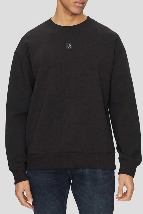 Детали: Мужской черный хлопковый свитшот Dettil от Hugo by Hugo Boss (Хуго бай Хуго Босс). Логотип на груди, круглый вырез горловины, классическая длина, трикотажные манжеты и нижний край
