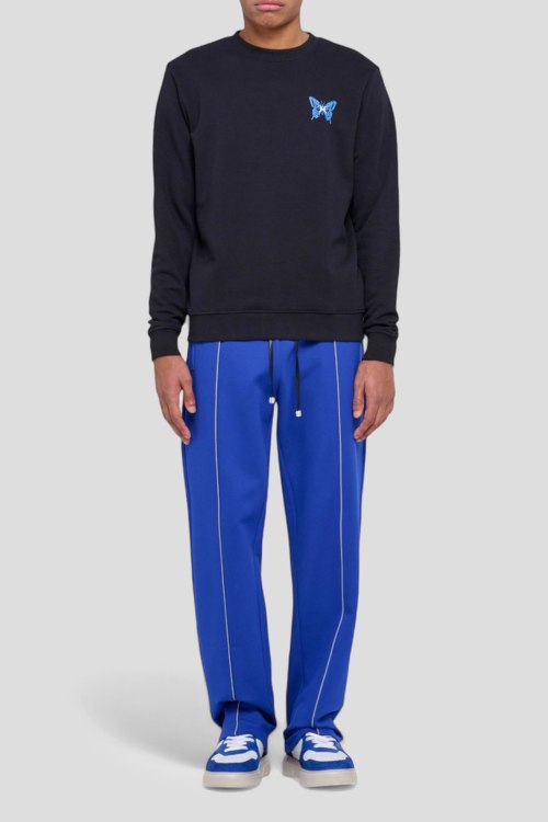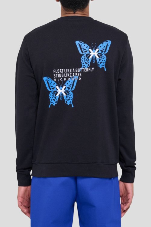 Детали: Мужской черный хлопковый свитшот Scarpis от John Richmond (Джон Ричмонд). Принт на груди и на спине, круглый вырез горловины, классическая длина, трикотажные манжеты и нижний край