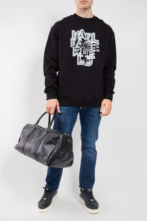Детали: Мужской черный хлопковый свитшот от Karl Lagerfeld (Карл Лагерфельд). Принт с логотипом на груди, круглый вырез горловины, классическая длина, трикотажные манжеты и нижний край