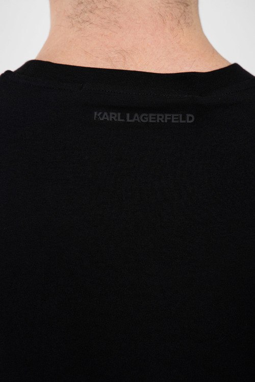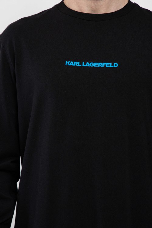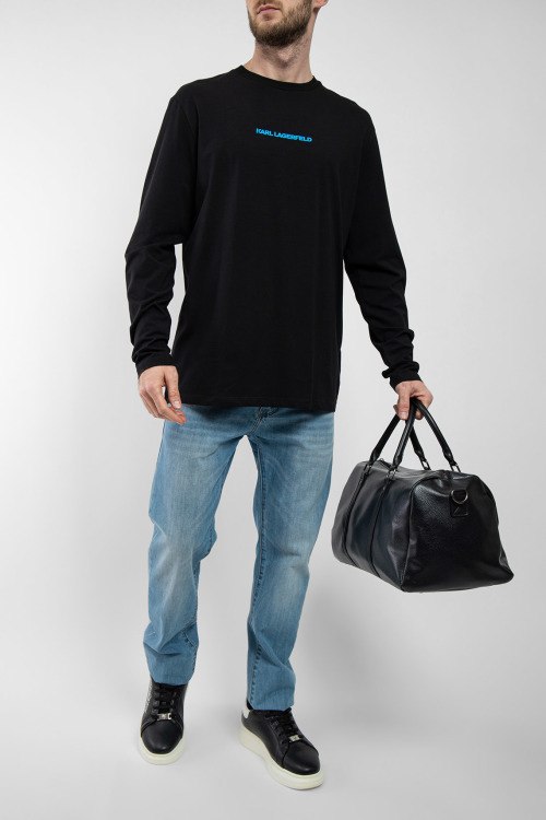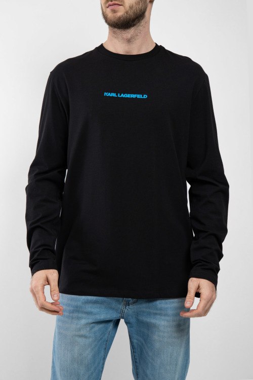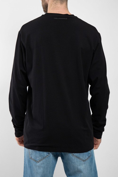 Мужской черный лонгслив из хлопкового микса от Karl Lagerfeld (Карл Лагерфельд). Классическая длина, круглый вырез горловины, длинные рукава, логотип бренда на груди.