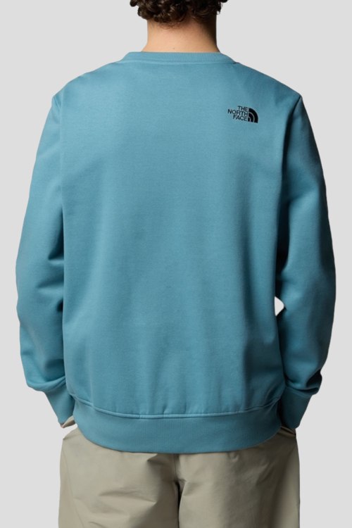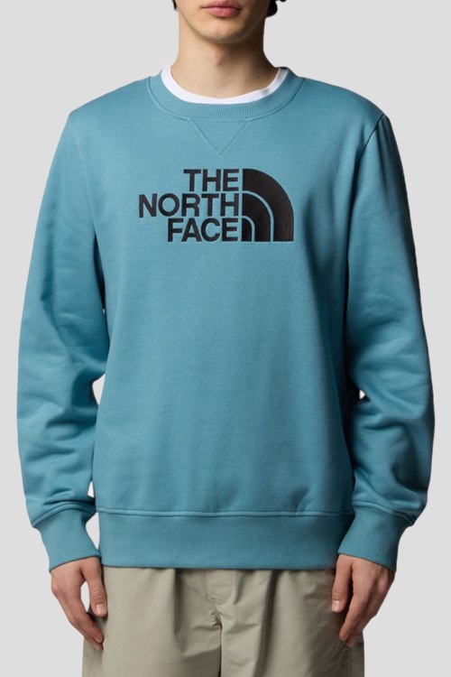 Детали: Мужской голубой хлопковый свитшот Drew Peak Crew от The North Face (Зе Норс Фейс). Логотип на груди, круглый вырез горловины, классическая длина, трикотажные манжеты и нижний край