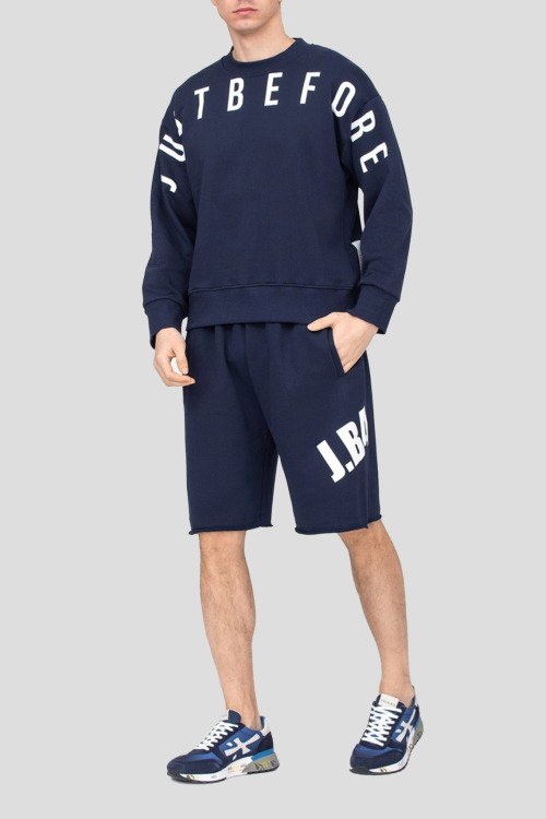 Детали: Мужской темно-синий свитшот из хлопка от J.B4 Just Before (Джаст Бифо). Классическая длина, прямой фасон, круглый вырез горловины, длинные рукава, контрастный принт логотипа