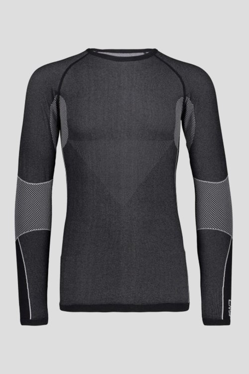 Мужской черный термореглан от CMP (СиЭмПи). Средняя длина, фасон приталенный, круглый вырез горловины, плоские швы, мягкий материал, сохраняющий тепло в холодную и очень холодную погоду.