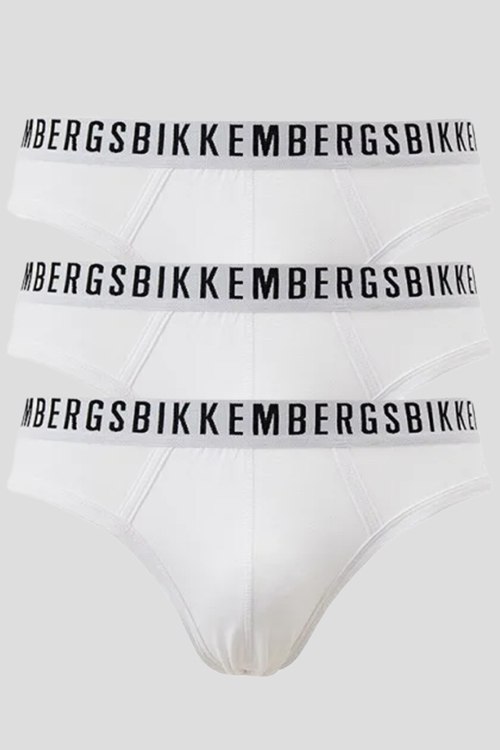 Детали: Мужской комплект хлопковых белых трусов от Bikkembergs (Биккембергс). Фасон-брифы, эластичный брендированный пояс. В комплекте 3 шт