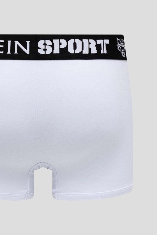 Детали: Мужские белые трусы-боксеры из хлопка и модала от Plein Sport (Плейн Спорт). Модель боксеры, широкая эластичная резинка на поясе с логотипом бренда