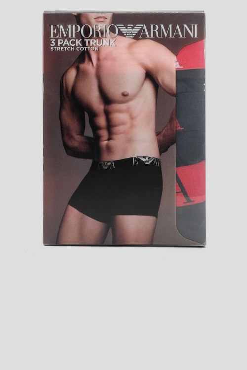 Детали: Мужские черные трусы из хлопкового микса от Emporio Armani (Эмпорио Армани). Комплект состоит из трех пар трусов боксеров, широкая эластичная резинка на поясе с логотипом бренда