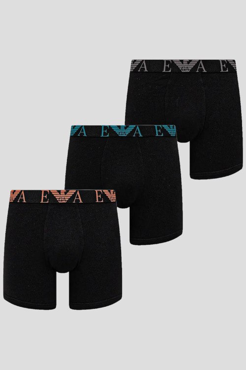 Детали: Мужской комплект черных хлопковых трусов от Emporio Armani (Эмпорио Армани). Фасон-боксеры, эластичный брендированный пояс. В комплекте 3 пары
