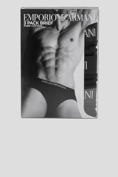 Детали: Мужские черные трусы из натурального хлопка от Emporio Armani (Эмпорио Армани). Комплект состоит из трех трусов черного цвета, модель-брифы, эластичная резинка на поясе с логотипом