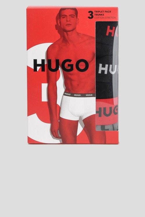 Детали: Мужские трусы из хлопкового микса от Hugo by Hugo Boss (Хуго бай Хуго Босс). Комплект из трех пар трусов черного цвета, модель боксеры, широкая эластичная резинка с логотипом бренда, брендированная упаковка