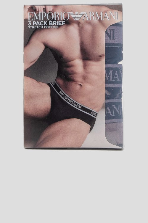 Детали: Мужской комплект хлопковых трусов от Emporio Armani (Эмпорио Армани). Фасон-брифы, эластичный пояс с логотипом. В комплекте 3 шт