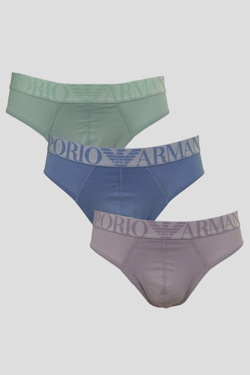 Детали: Мужские трусы из хлопкового микса от Emporio Armani (Эмпорио Армани). Комплект состоит из трех пар трусов, модель брифы, широкая эластичная резинка с логотипом бренда
