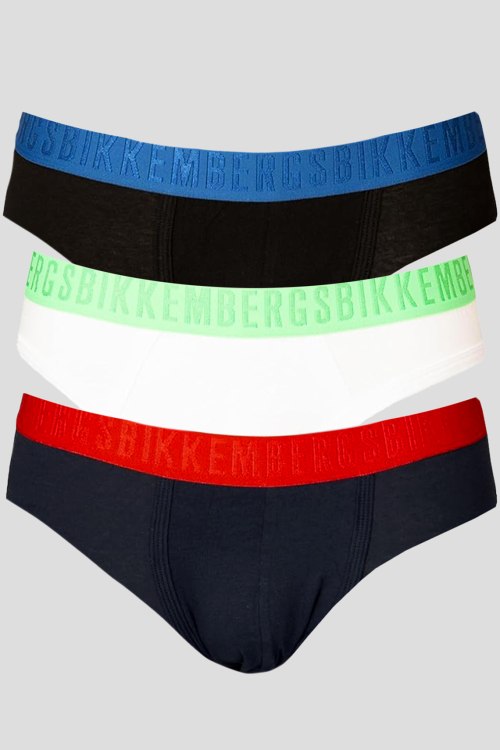Детали: Мужской комплект хлопковых трусов от Bikkembergs (Биккембергс). Фасон-брифы, эластичный брендированный пояс. В комплекте 3 шт (белый, черный, темно-синий)