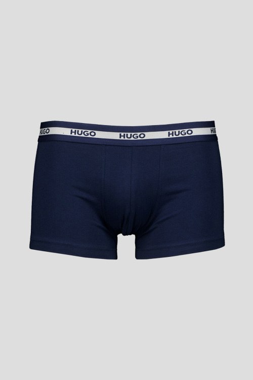 Детали: Мужской набор хлопковых трусов от Hugo by Hugo Boss (Хуго бай Хуго Босс). Фасон-боксеры, эластичный брендированный пояс. В наборе 3 цвета: черный, голубой, темно-синий