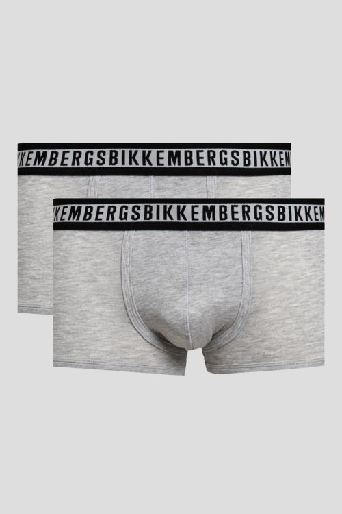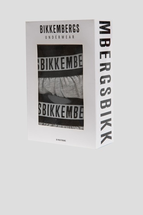 Детали: Мужской комплект серых хлопковых трусов (2 шт) от Bikkembergs (Биккембергс). Фасон-транки, серая эластичная резинка с логотипом
