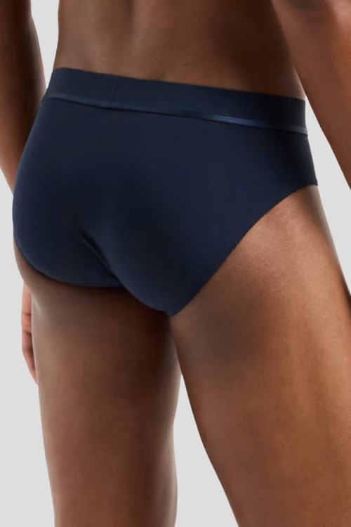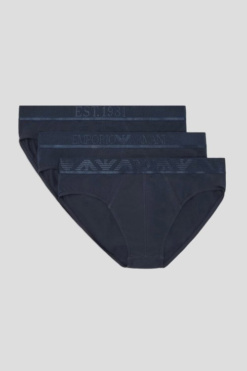 Детали: Мужской комплект темно-синих хлопковых трусов от Emporio Armani (Эмпорио Армани). Фасон-брифы, эластичный брендированный пояс. В комплекте 3 шт