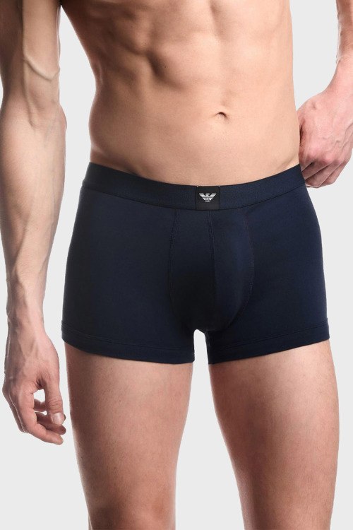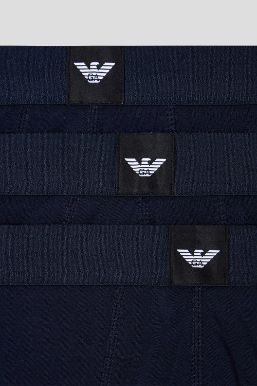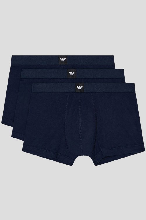 Детали: Мужской комплект темно-синих хлопковых трусов от Emporio Armani (Эмпорио Армани). Фасон-боксеры, эластичный брендированный пояс. В комплекте 3 пары