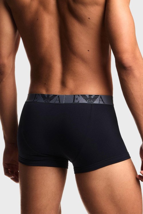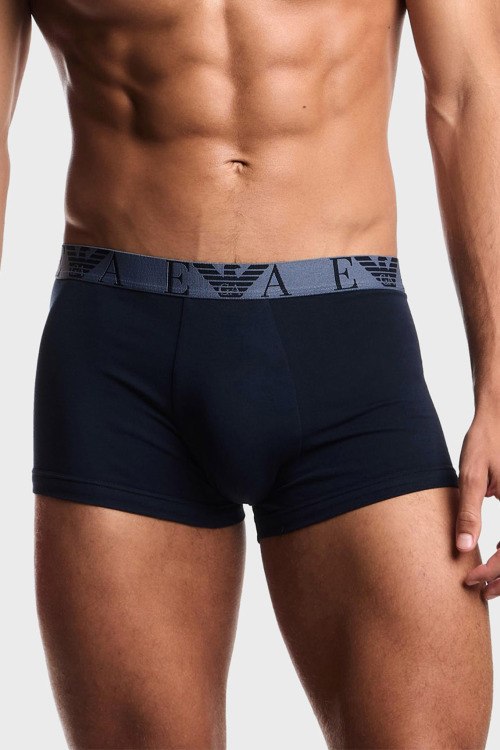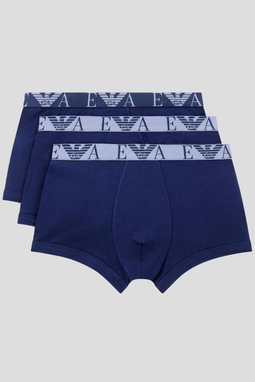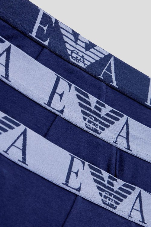 Детали: Мужской комплект темно-синих хлопковых трусов от Emporio Armani (Эмпорио Армани). Фасон-боксеры, эластичный брендированный пояс. В комплекте 3 пары