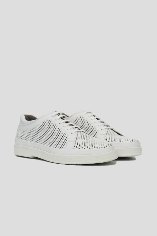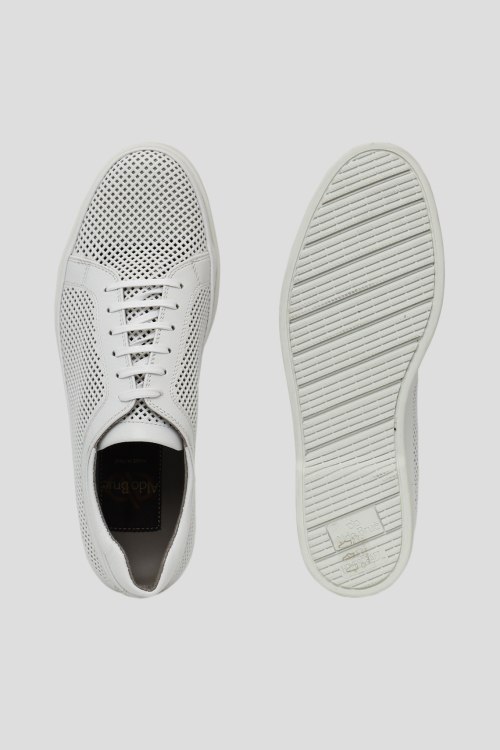 Детали: Мужские белые туфли из натуральной кожи от Aldo Brue (Алдо Брюе). Дизайн с перфорацией, классическая шнуровка, закругленный носок, плоская подошва