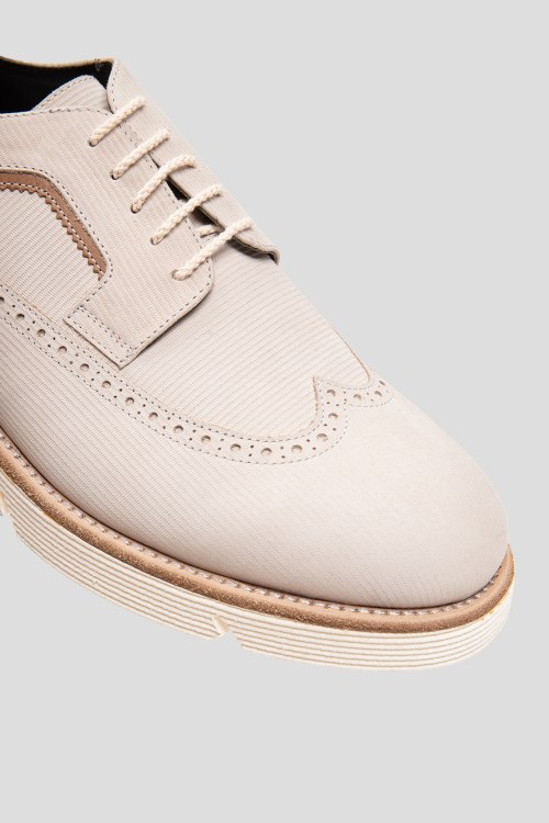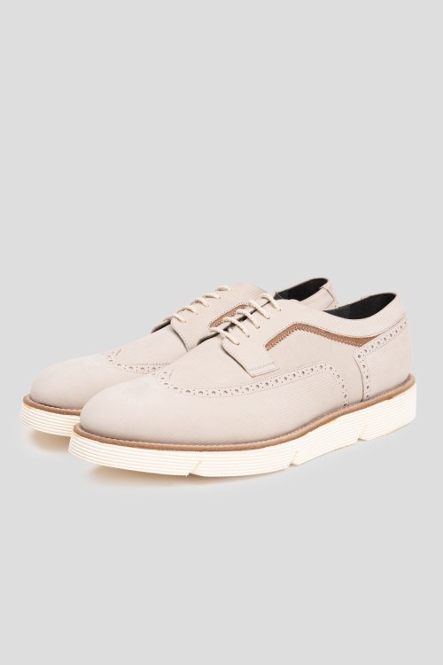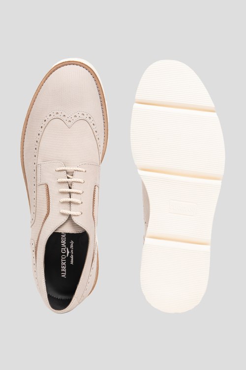 Детали: Мужские бежевые замшевые броги от Alberto Guardiani (Альберто Гуардиани). Перфорированные вставки, классическая шнуровка, закругленный носок, кожаная стелька