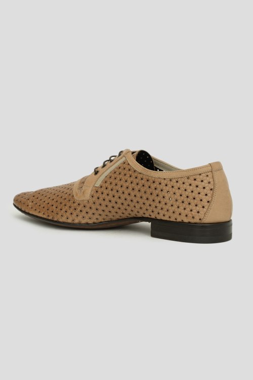 Детали: Туфли из натуральной перфорированной кожи. Однотонная модель, закругленный носок, небольшой каблук, спереди завязываются на шнуровку