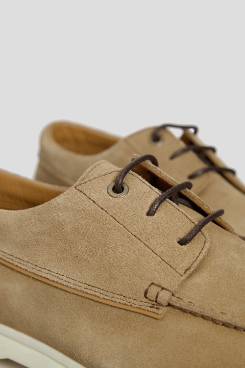 Детали: Мужские бежевые замшевые туфли от Hackett (Хаккетт). Классическая шнуровка, миндалевидный носок, кожаная стелька. Высота подошвы: 2 см