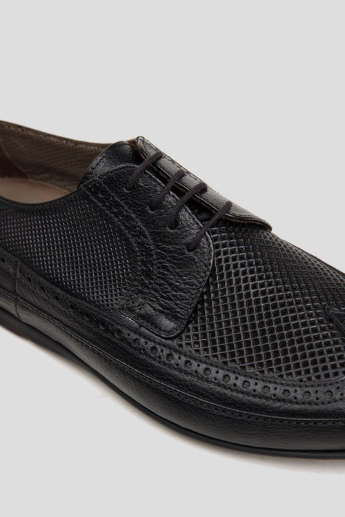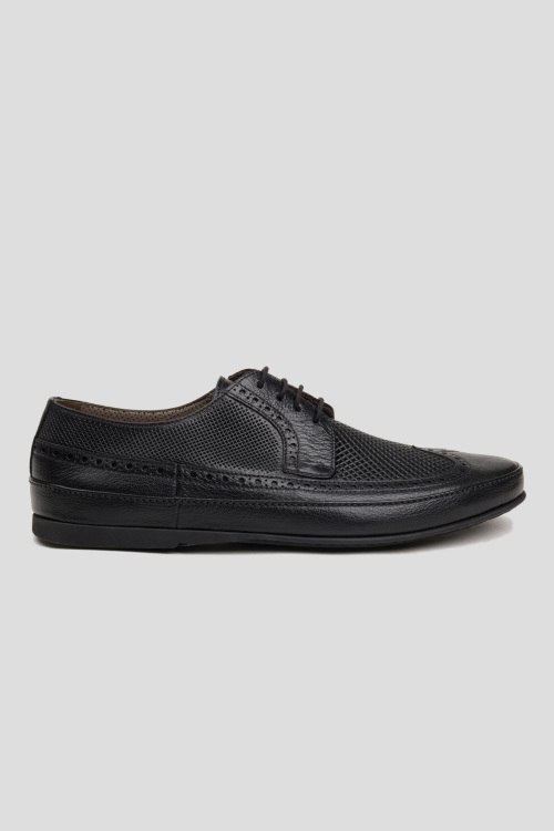 Детали: Мужские черные туфли из натуральной кожи от Aldo Brue (Алдо Бруе). Закругленный носок, спереди классическая шнуровка, дизайн с перфорацией, резиновая подошва
