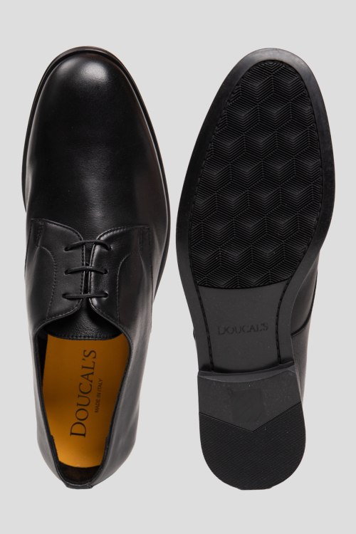 Детали: Мужские черные кожаные туфли от Doucal's (Дукалс). Модель из гладкой кожи, классическая шнуровка, миндалевидный носок, кожаная стелька