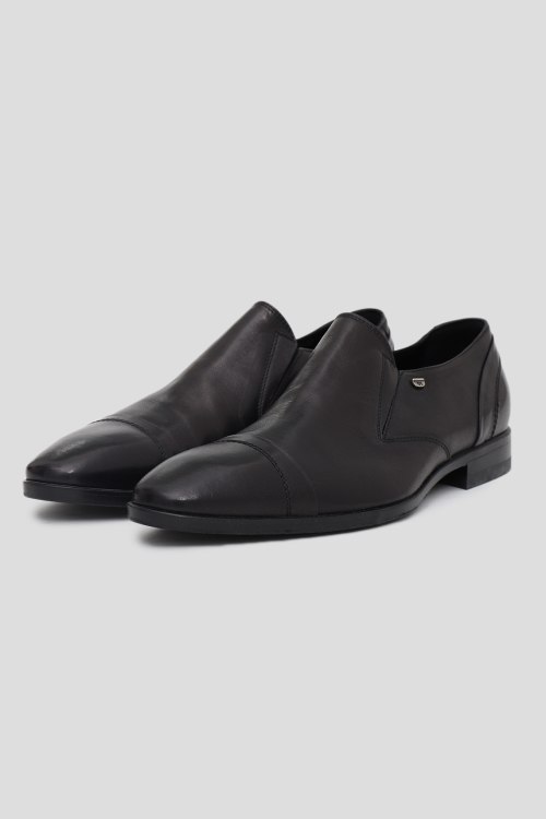 Детали: Мужские черные туфли из натуральной кожи от Giampiero Nicola (Джампьеро Никола). Закругленный носок, плоская подошва, небольшой каблук, по бокам вставки из эластичной резинки. Декорированы серебряной нашивкой