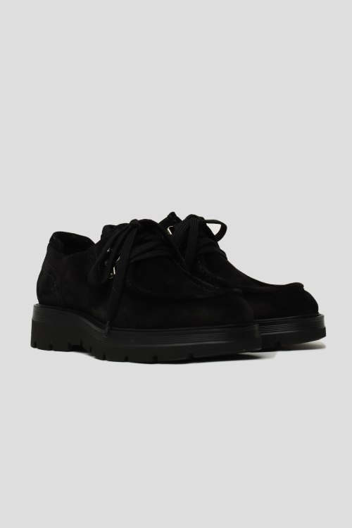 Детали: Мужские черные туфли из замша от Giampiero Nicola (Джампьеро Никола). Закругленный носок, спереди шнуровка с металлической фурнитурой, тракторная подошва. Измерения: каблук: 4 см