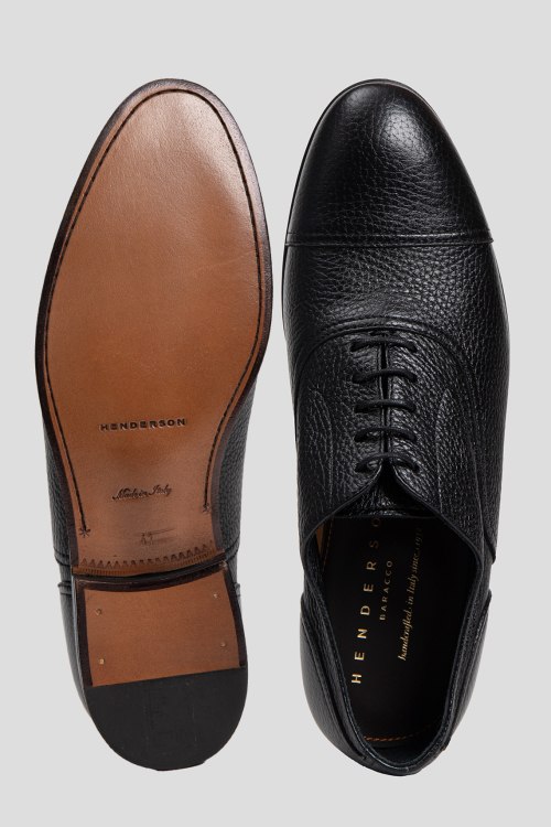 Детали: Мужские черные туфли из натуральной кожи от Henderson Baracco (Хендерсон Баракко). Миндалевидный носок, спереди шнуровка, блочный каблук