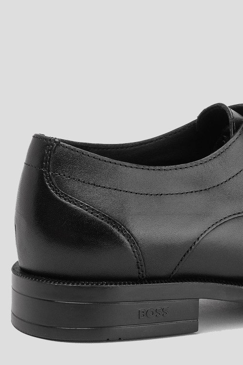 Детали: Мужские черные туфли Tayil из натуральной кожи от Hugo Boss (Хуго Босс). Миндалевидный носок, спереди классическая шнуровка, блочный каблук