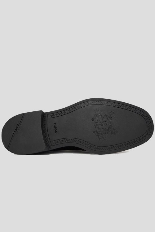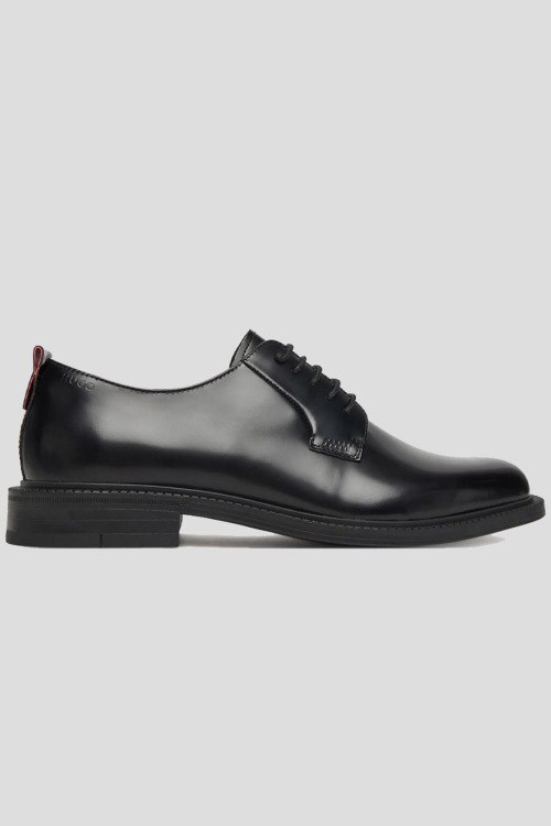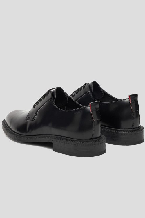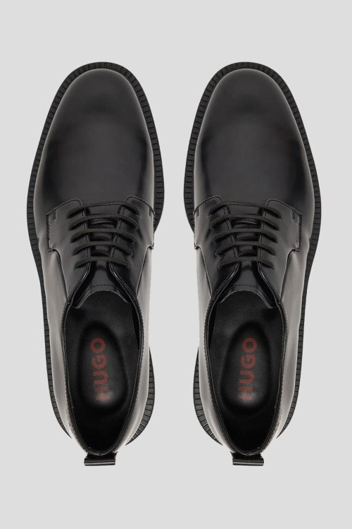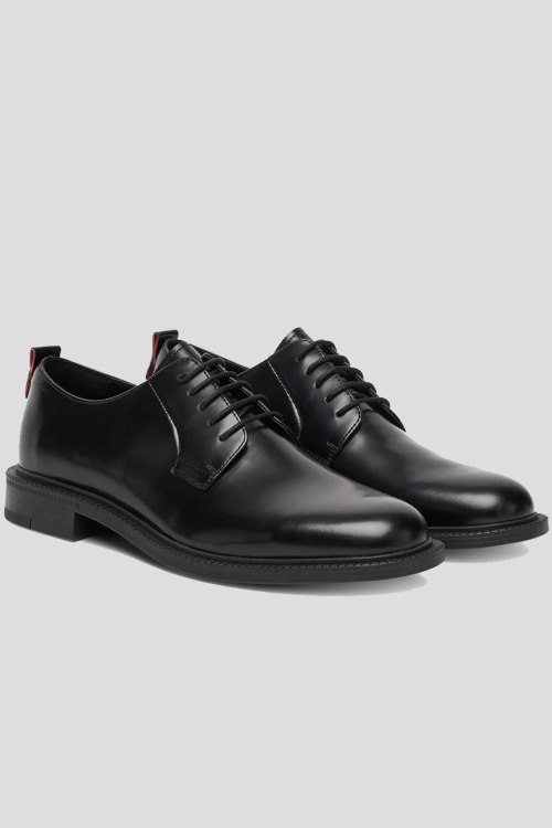 Детали: Мужские черные кожаные туфли Lysander от Hugo by Hugo Boss (Хуго бай Хуго Босс). Модель из гладкой кожи, тиснение логотипа, классическая шнуровка, закругленный носок